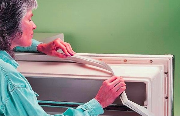 - La gomme de scellement a peut-être disparu. En raison de la perte d'étanchéité, la glace commence à s'accumuler dans le congélateur. Au moment où le moteur du réfrigérateur ne fonctionne pas, l'eau commence à couler sur le sol, au fur et à mesure que la glace fond (en passant, si le compresseur fonctionne en continu - c'est un signe évident de défaillance). Si vous remarquez que l'étanchéité de la gomme d'étanchéité est cassée, essayez d'abord de la réparer.