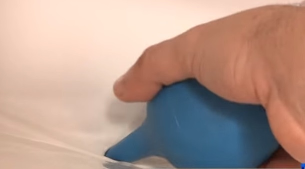 Nettoyage du tuyau d'évacuation avec une poire en caoutchouc