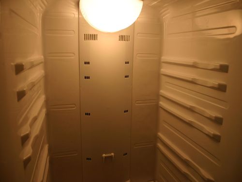 Pour ce faire, éteignez le réfrigérateur, retirez de l'appareil photo toutes les étagères et plateaux qui gênent l'accès au plafond. Après cela, dévissez la vis fixant l'abat-jour et déconnectez le câblage, dévissez l'ampoule et remplacez-la par une similaire. Après cela, effectuez toutes les étapes dans l'ordre inverse.