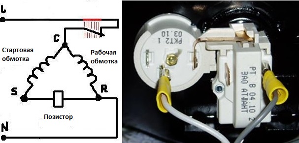 Dans les réfrigérateurs domestiques modernes, un relais de démarrage avec un posistor intégré est utilisé (une résistance qui augmente la résistance avec l'augmentation de la température). Le circuit de cet appareil (Fig.2) est similaire à un relais à induction, mais au lieu d'une bobine, une résistance connectée au circuit de démarrage est utilisée pour fermer et ouvrir le contact de démarrage.