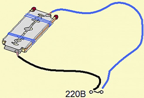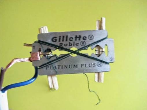 - Un noyau en cuivre d'un fil électrique est attaché à chaque lame.