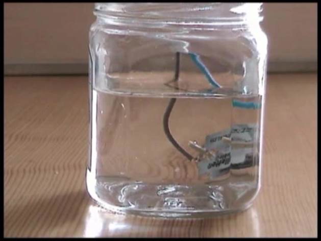 Maintenant, il ne reste plus qu'à ramasser un réservoir dans lequel il sera possible de faire bouillir de l'eau. Le conteneur qui sera utilisé avec une chaudière de cette conception ne doit pas être en matériau conducteur. Une extrême prudence doit également être prise lors de la mise sous et hors tension de l'appareil. Avant d'allumer un appareil électrique fait maison dans un réseau 220 V, vous devez d'abord abaisser l'appareil dans l'eau. Lors du chauffage de l'eau, il est strictement interdit de toucher un appareil électrique ou un récipient d'eau.