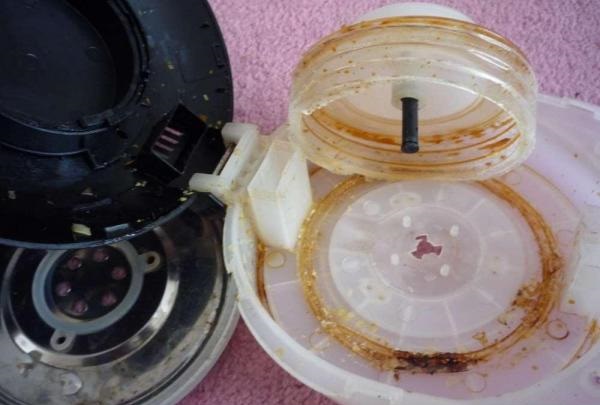 - Le calcaire dans la chambre peut interférer avec la rotation de la roue. Il doit être soigneusement retiré avec une spatule en plastique ou en bois. L'utilisation d'objets métalliques tranchants n'est pas recommandée, car cela pourrait endommager le boîtier de l'appareil photo.