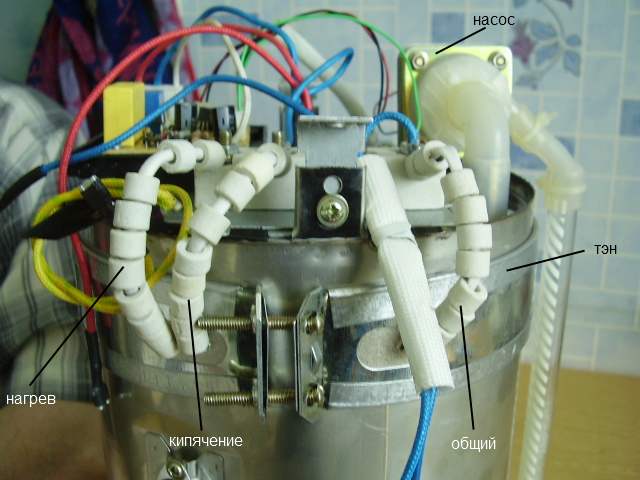 Les tuyaux de raccordement nécessitent une vérification de la saleté, du tartre, etc. Le moteur lui-même doit sonner en utilisant n'importe quelle source de tension externe. Pour cela, même les batteries les plus ordinaires feront l'affaire. Certains artisans utilisent une batterie de voiture. L'endommagement de l'appareil lorsque le bouton du thermopot ne fonctionne pas indique que le moteur électrique ne répond pas, dont la tension de fonctionnement normale est de 8 à 24 volts. Dans le cas d'une thermo-bouilloire, une réparation indépendante n'est pas toujours payante, il est préférable de contacter un centre de service.