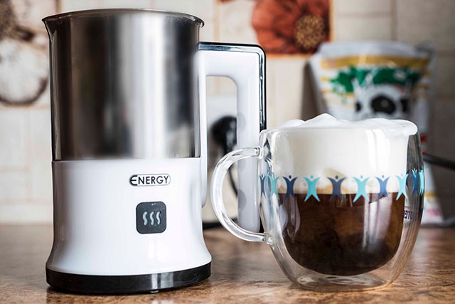 - à l'extrémité du tube il y a une large ouverture, fonctionnant selon le principe de l'atomiseur, amplifiant le flux de vapeur. Le tube est abaissé dans un verre de lait à moitié plein. Après le début de l'alimentation en air, le récipient doit être tourné, permettant à l'air de fouetter uniformément la mousse;