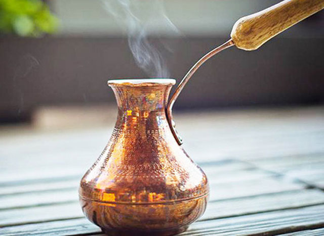 - turc classique. Louche pour faire un verre sur le feu, avec un fond épais en cuivre;