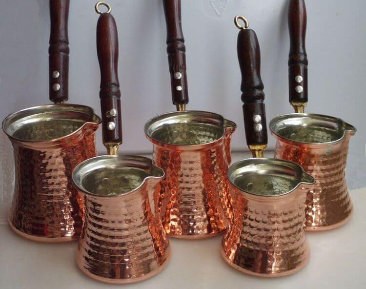 En exclusivité, les Turcs peuvent utiliser de l'argent. Le coût des cezves en cuivre, comme il semble à première vue, est très élevé.