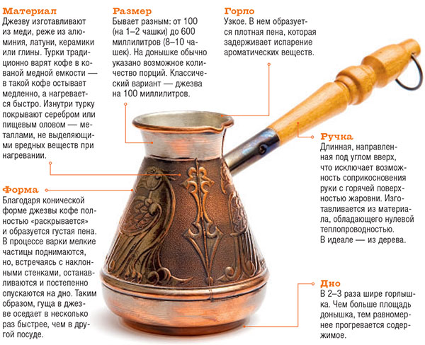 Les gourmets préfèrent préparer une boisson dans des cezves faits à la main. Le plus souvent, les Turcs sont achetés auprès des représentants des entreprises de l'Est.