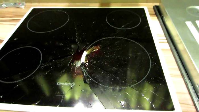 La vitrocéramique réagit également à la chute d'objets tranchants même avec un petit poids. Habituellement, cela est dû à la chute de la pointe du couteau. Par conséquent, avant d'acheter une plaque de cuisson de ce matériau, vous devez être préparé au fait que vous devez être extrêmement prudent et attentif avec lui afin de ne pas avoir à acheter de nouveaux équipements dans un proche avenir.