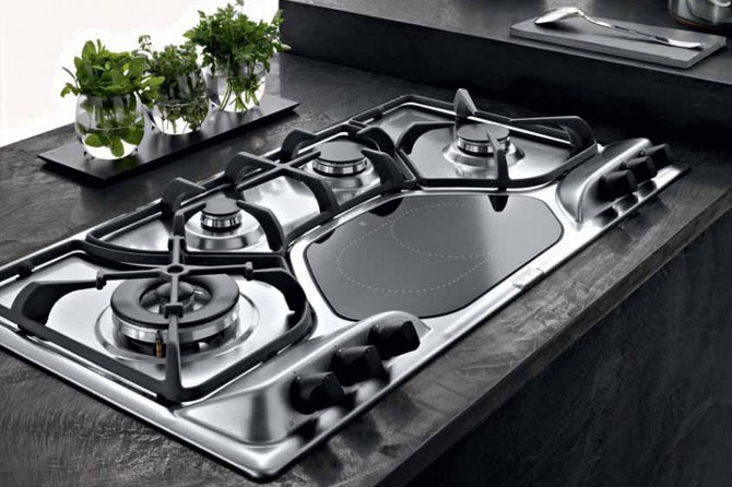 - L'inconvénient d'utiliser une table de cuisson. Le contrôle de la température des cuisinières électriques avec brûleurs en fonte est moins flexible que les modèles à gaz. Dans le même temps, pour les modèles électriques qui fonctionnent sur la base de l'induction, ce problème est absent. Contrairement aux plaques de cuisson en acier inoxydable ou en fonte, les modèles en vitrocéramique permettent un contrôle plus flexible de la température. Mais en même temps, le réglage du brûleur à gaz est intuitivement simple et vous devez vous habituer aux brûleurs électriques.