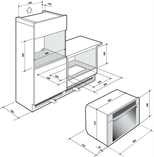 Les dimensions des fours encastrables sont pour la plupart standard: la largeur est de 60 cm, la profondeur est comprise entre 50 et 55 cm. La hauteur dans la taille intérieure est également d'environ 55 cm, et dans l'extérieur - 60 cm. Les fours ayant la fonction d'un four à micro-ondes, leur hauteur varie de 36 à 55 cm.