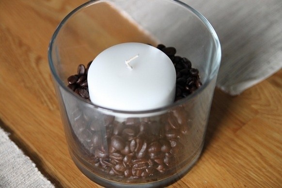 - fixer sur la surface extérieure du bouchon sous le vin, verser les grains de café à l'intérieur et mettre une bougie décorative;