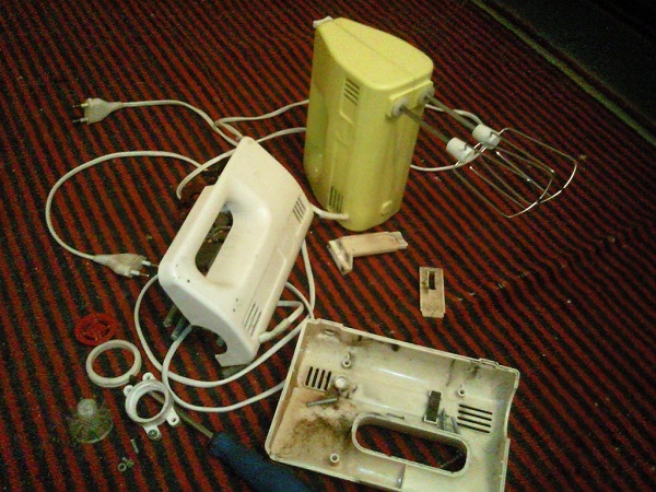Si le mélangeur ne fonctionne plus et que nous avons déjà créé un ballon, nous n'avons pas à nous précipiter pour jeter le boîtier avec le moteur. Vous pouvez le démonter et ramasser quelque chose d'utile pour de futures modifications. Le processus de démontage doit être effectué comme suit.