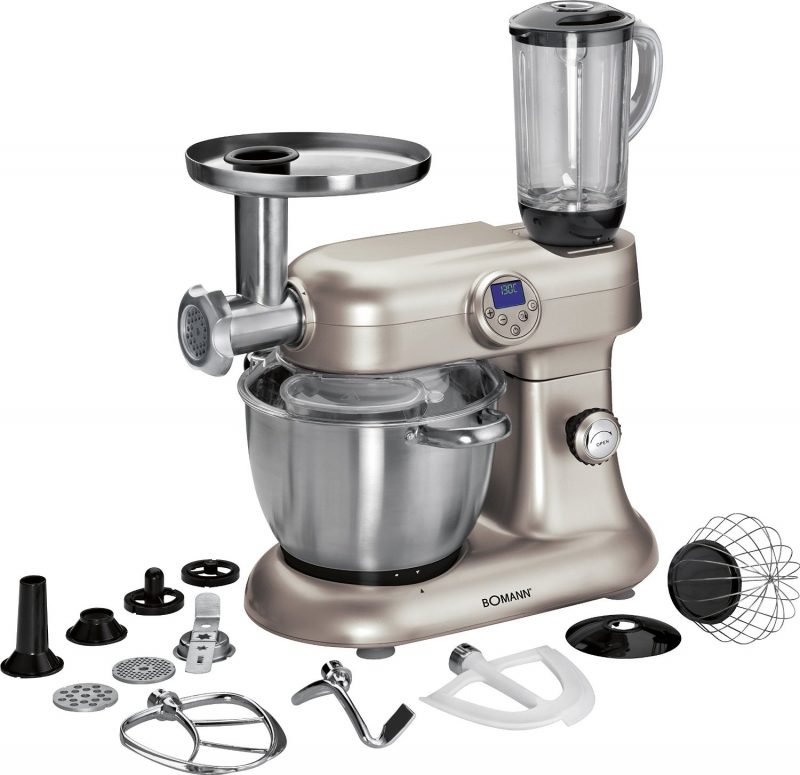 Le robot culinaire universel Bomann KM 379 CB est capable d'effectuer toutes les opérations. Remplacez le hachoir à viande, le mélangeur, le mélangeur. Le principal avantage est la puissance qui offre de grandes capacités de l'appareil - de grands volumes de produits sont facilement traités.