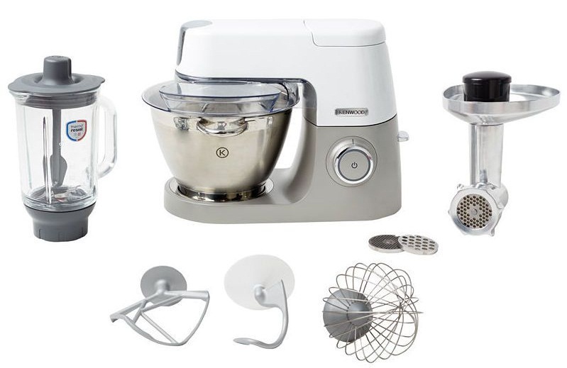 Si le prix n'a pas d'importance lors du choix d'un robot culinaire, vous devez faire attention au modèle Kenwood KVC5030T. Il s'agit d'une unité coûteuse et puissante (1100 W), broyant parfaitement la viande de toute rigidité. Une bonne stabilité est attachée à l'appareil par son grand poids - 8,6 kg. Un bol en acier inoxydable a un volume de 4,6 litres.