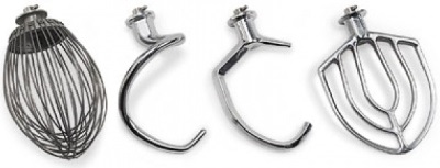 Quant aux buses, le plus souvent dans le kit est un ensemble de base - un fouet classique pour fouetter et un crochet pour pétrir la pâte. Mais si vous le souhaitez, il est possible d'en acheter des supplémentaires pour presque tous les modèles de mélangeur fixe, transformant ainsi votre mélangeur en hachoir à viande, mélangeur, machine à pâtes et ouvre-boîte. Soit dit en passant, certains modèles du kit contiennent des sacs spéciaux pour ranger les accessoires.