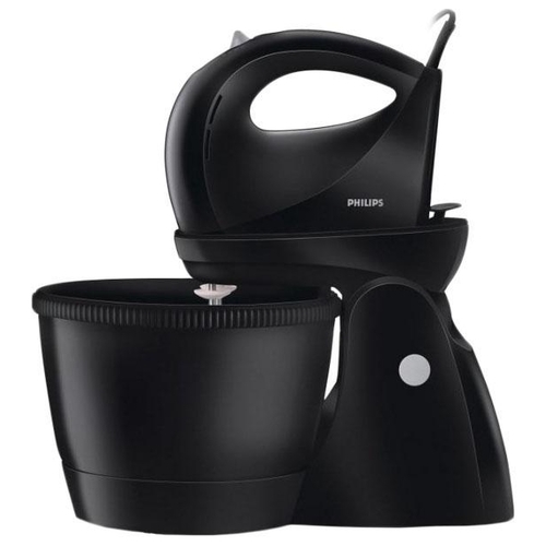 - 2.Philips HR1565 - l'un des meilleurs mélangeurs de 2018. Il a 3 modes de vitesse, un mode turbo et une puissance de 350 watts. Le bol rotatif de 3 litres est en plastique. Bien sûr, pétrir la pâte fraîche avec elle ne fonctionnera pas, mais pour les décisions culinaires quotidiennes, c'est parfait. Parmi les inconvénients - les pointes des buses reposent légèrement contre le fond du bol et le grattent pendant la cuisson.