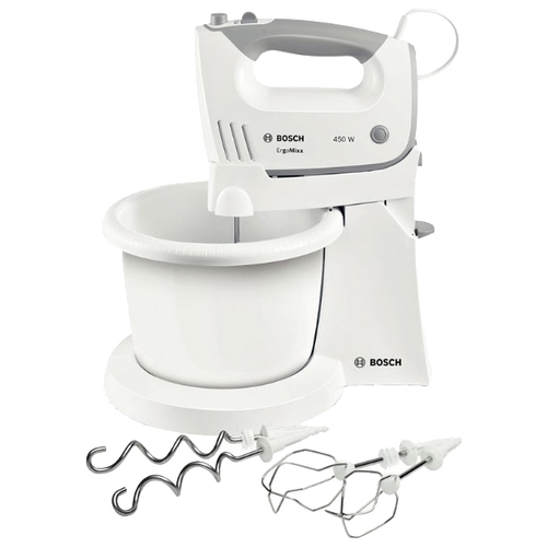 - Bosch MFQ 36460 est un mélangeur en plastique compact et léger de 450 watts. Il a cinq vitesses, des modes d'impulsion et turbo, un bol rotatif en plastique de 3 litres. Les options sont standard. L'appareil peut être utilisé indépendamment. Certains utilisateurs se plaignent de la puissance insuffisante de l'appareil.