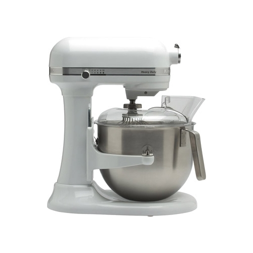 - KitchenAid 5KSM 7591XEWH est la marque la plus chère du marché russe. Le modèle idéal pour un travail professionnel. Le volume du bol en métal arrondi est de 7 litres, ce qui conviendra même à une petite boulangerie. Le corps est en métal, ce qui rend le mélangeur tenace, lourd et stable. La puissance de l'appareil, égale à 500 watts, vous permettra de faire face à toutes les tâches culinaires. L'appareil dispose de dix modes de vitesse. Comprend un fouet pour fouetter, un crochet pour pétrir la pâte, une spatule. Il y a une prise pour connecter des buses supplémentaires. Il n'y a qu'un seul inconvénient - un prix assez élevé.