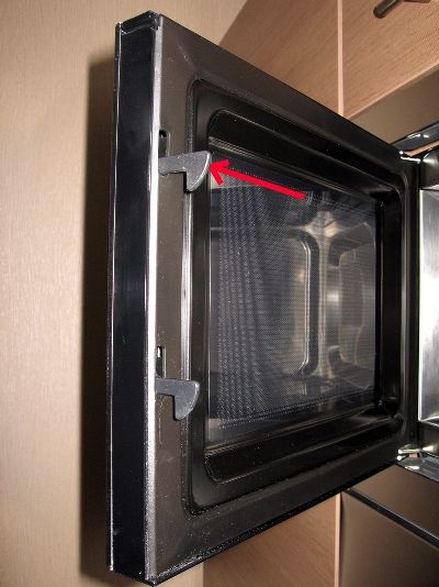 - La raison suivante est un loquet de porte cassé. Les fabricants ont un dispositif de sécurité: si la porte n'est pas fermée, l'appareil ne s'allume pas. Essayez de serrer la porte plus fort. Essayer de déverrouiller le mécanisme avec un tournevis n'est pas une bonne idée - si vous démarrez l'appareil dans cette condition, vous risquez des brûlures et des radiations.