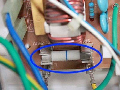 Pour effectuer des manipulations de remplacement, déconnectez l'appareil du réseau, retirez le capot supérieur. Habituellement, le fusible est monté sur deux loquets. Extraire l'élément brûlé et le remplacer par un neuf n'est pas difficile. Lors du remplacement d'un fusible, afin d'éviter les chocs électriques, ne touchez pas les autres composants, en particulier à mains nues.
