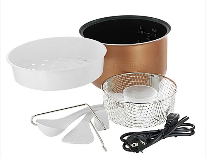 Pour la cuisson à la vapeur, des paniers en treillis spéciaux ou des conteneurs avec des trous sont inclus. Le volume du bol varie entre 2 et 5 litres. Les modèles simples ont une fonction de démarrage différé, vous pouvez y chauffer des aliments, le processus de contrôle de la cuisson est minimisé.