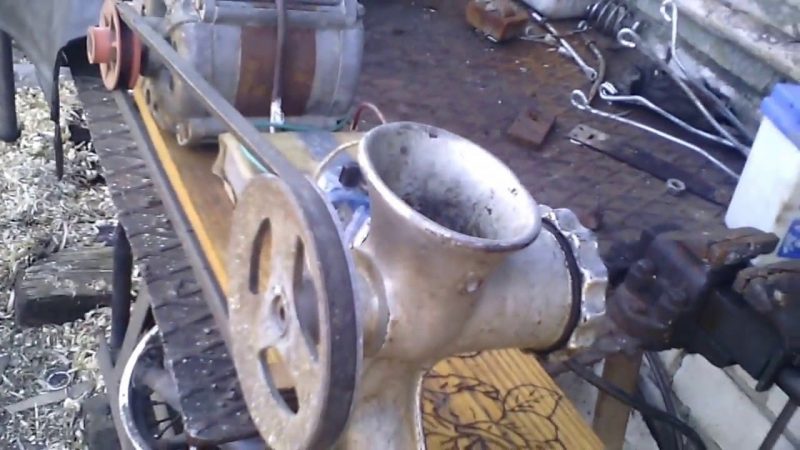 Envisagez plusieurs options pour la construction d'un hachoir à viande, de sorte que les détails devront être différents. Ce qu'il faut exactement, c'est un moteur électrique (0,3-0,5 kW) et un ancien hachoir à viande.