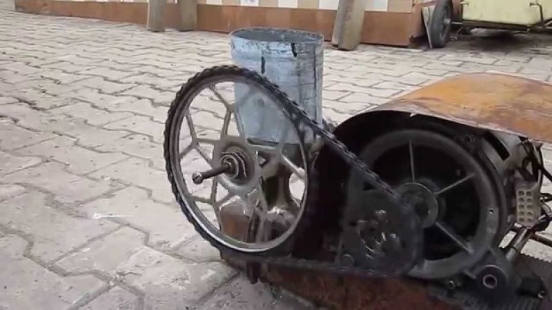 Au lieu d'une courroie, vous pouvez également installer une chaîne, mais cela peut provoquer une combustion précoce du moteur et un grincement des dents du moyeu