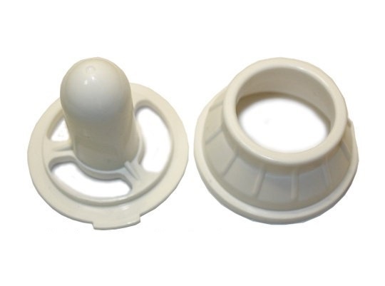 - La buse est terminée en deux parties: la première partie (un cercle avec une longue convexité) est fixée à la tête du corps de l'appareil. Une deuxième partie est posée dessus, semblable à un cône tronqué. N'oubliez pas de retirer le couteau et le gril du hachoir à viande!