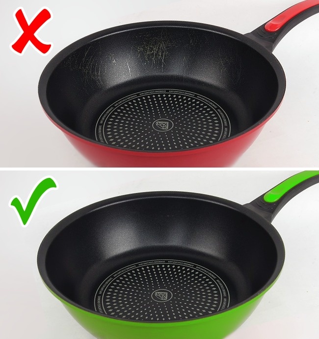 4. Dans les plats enrobés, vous pouvez cuisiner sans ajouter d'huile. Un avantage supplémentaire est un lavage facile sans utiliser de détergents abrasifs.