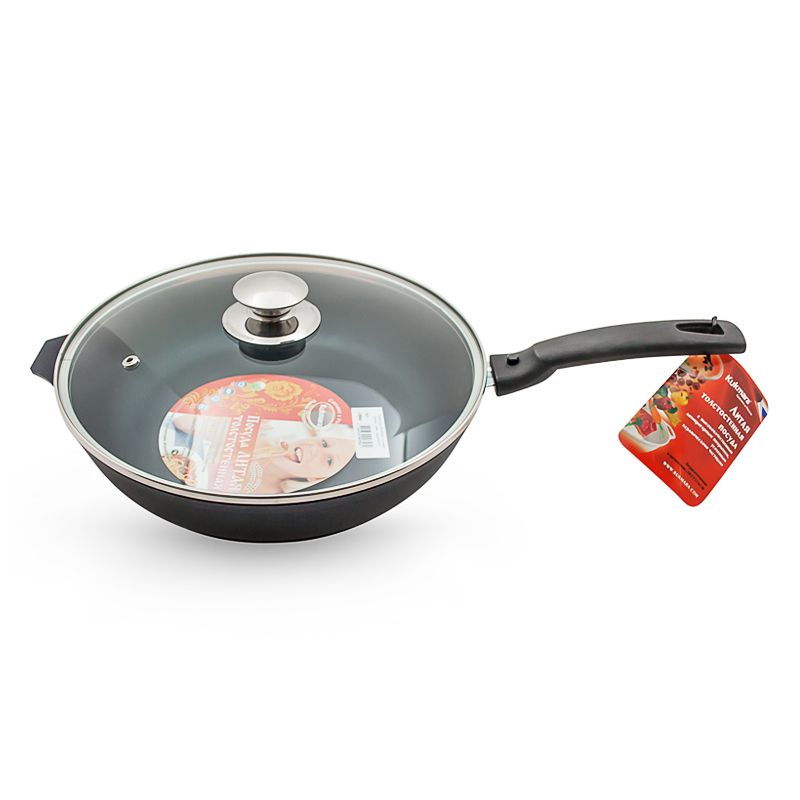 Pays d'origine - Russie, le fabricant garantit l'utilisation de matériaux de qualité. La poignée est amovible, de sorte que la poêle peut être utilisée dans le four. En plus de la configuration de base vient plusieurs poignées. Le diamètre de la vaisselle est optimal, 26 centimètres, le niveau des parois latérales est de 6 centimètres. Le couvercle est en verre durable.