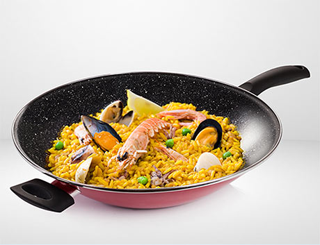 - Poêle wok. Un wok a été inventé en Chine. Dans la version classique, c'est un plat en forme de cône qui se dilate vers le haut. Il y a de grandes poignées des deux côtés. Aujourd'hui, les fabricants d'ustensiles de cuisine ont légèrement modifié le wok traditionnel, le rendant plus pratique pour une utilisation sur les poêles modernes.