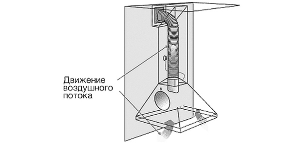 - La présence d'un grand nombre de virages dans l'espace allant de la hotte à la ventilation complique le trajet du flux d'air. Pour cette raison, sa vitesse augmente, ce qui conduit à un bruit fort.