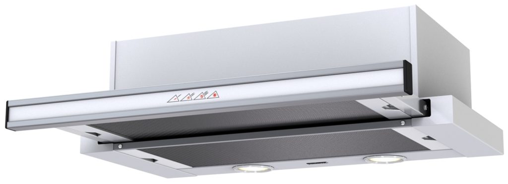 Fabricant - Turquie. La largeur de l'encastrement est de 60 centimètres. Taille - 17,5x60x28 cm.Une lampe halogène est intégrée dans l'appareil (2x50 W, la luminosité est réglable). Productivité - 550 m³ / h. Niveau sonore - 46 décibels. Le modèle est équipé d'un panneau de commande tactile, de deux moteurs, d'un triple niveau de puissance. L'inconvénient est un travail bruyant et un éclairage peu économique. Le prix moyen est de 3150 roubles.