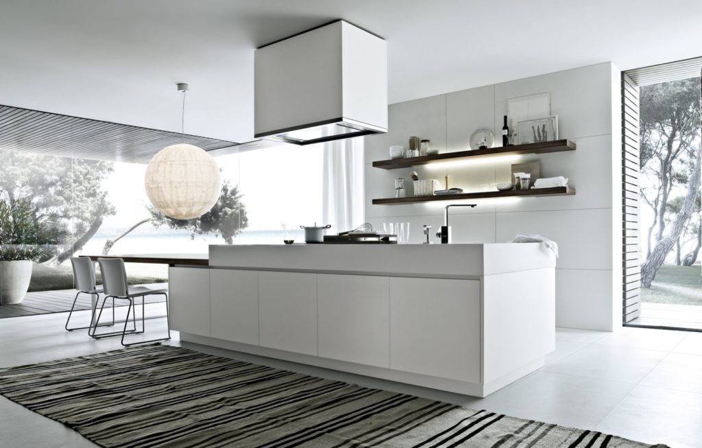 Les hottes îlots sont le plus souvent installées dans des cuisines spacieuses, où le poêle est situé au milieu de la pièce. Ce type d'appareil est fixé au plafond.