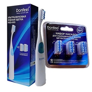 Donfeel HSD-005. Un appareil à ultrasons qui fonctionne à une fréquence de 1,7 MHz. Alimenté par des piles de doigts. Il est fabriqué en Chine ou à Taiwan. Trois buses remplaçables sont incluses avec l'appareil. Il est possible de passer du mode standard au mode délicat. Le coût approximatif est de 2800 roubles.