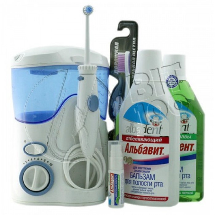 Il s'agit d'un irrigateur stationnaire, fonctionne en mode micro-bulle et a une puissance de tête à dix niveaux. Le kit contient plusieurs types de buses conçues pour éliminer la plaque dentaire des dents, nettoyer la langue et une pointe pour pulvériser les médicaments. On distingue les avantages suivants du modèle d'appareil Waterpik WP 100: