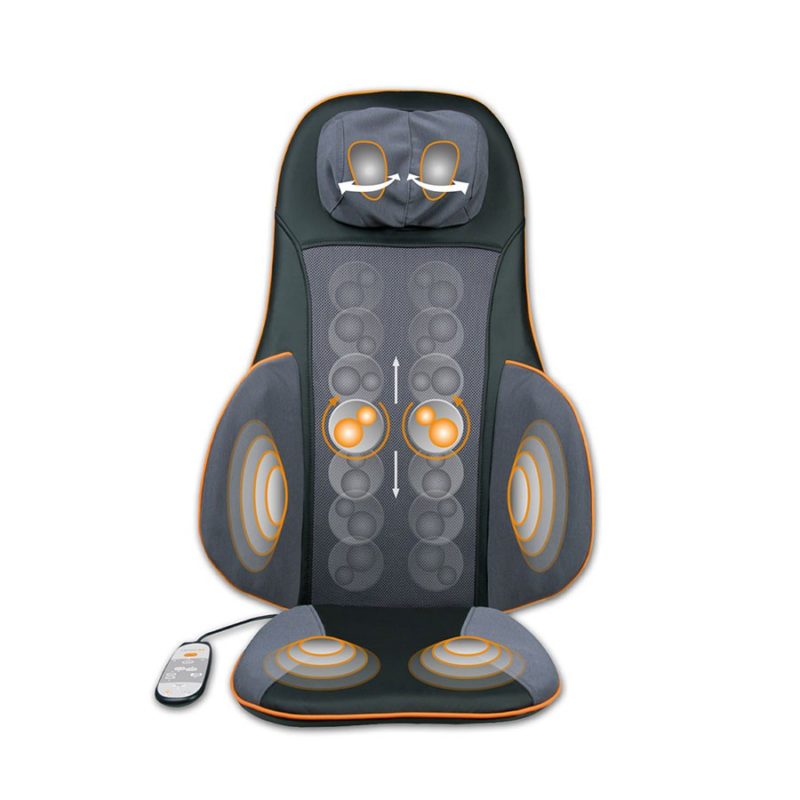 - Medisana MC 820/822 est un appareil de massage corporel électronique moderne qui fournit une acupression du dos, du cou et des hanches à l'aide de rouleaux de massage. Un tissu facile à nettoyer est utilisé comme matériau de couverture de la cape. L'appareil est fixé au siège à l'aide de sangles velcro. Pour plus de confort lors de l'utilisation de personnes de différentes hauteurs, un réglage en hauteur est prévu. La minuterie vous permet d'éteindre automatiquement l'appareil après 15 minutes, le kit comprend une télécommande. Le coût d'un tel masseur varie de 11 à 18 mille roubles.