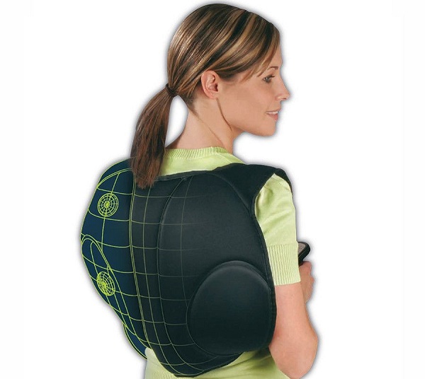 Le masseur en forme de sac à dos a une forme correspondante, avant utilisation il doit être porté sur le dos. Contrairement au modèle précédent, le sac à dos est plus adapté aux personnes ayant un style de vie en mouvement.