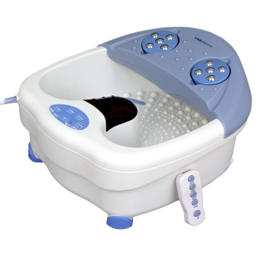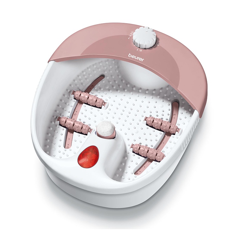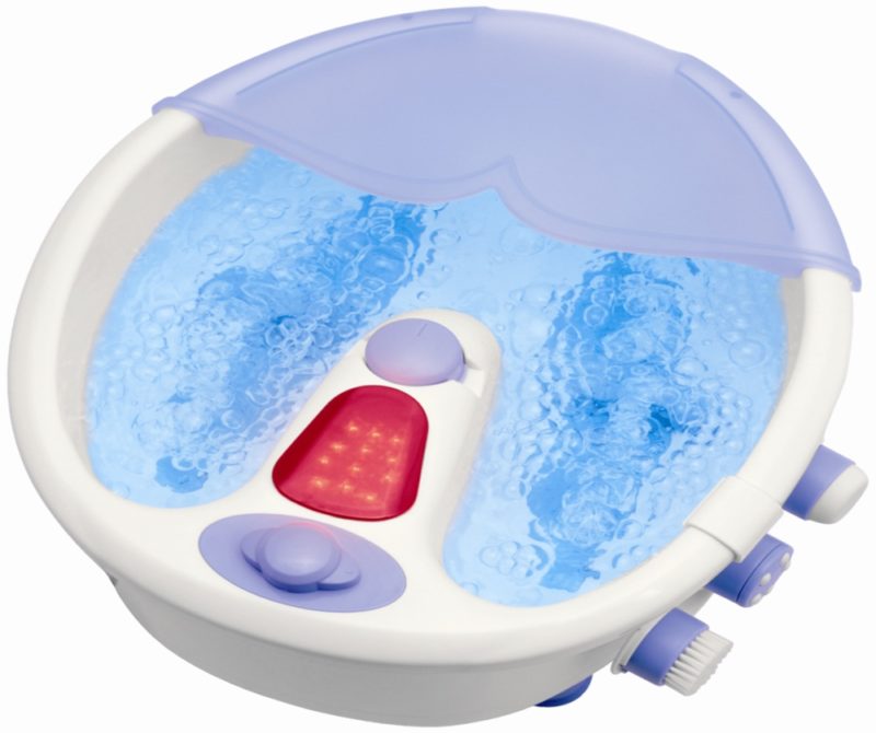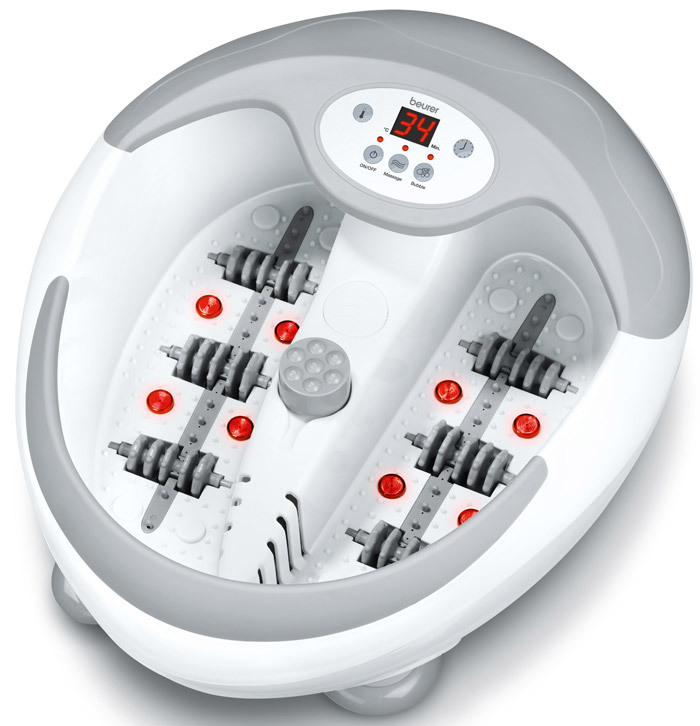 - Beurer FB50 est un bain de pieds d'hydromassage multifonctionnel, dont le coût s'élève actuellement à 7200 roubles. Il offre la possibilité d'utiliser des vibrations et un massage aux bulles, qui sont complétés par une exposition à la peau des pieds avec des rouleaux situés au bas de l'appareil. Il est possible d'utiliser un mode de fonctionnement sec, n'impliquant pas la présence de liquide dans le réservoir. Le mode sélectionné avec tous ses paramètres s'affiche sur l'écran électronique. Sur celui-ci, vous pouvez contrôler le temps de la procédure, qui est de 20 à 60 minutes et la température du liquide, maintenue à un niveau constant. La pierre ponce et la brosse sont incluses en tant que buses interchangeables, et les effets infrarouges et magnétiques sont des fonctions supplémentaires. Les seuls inconvénients dans ce cas peuvent être appelés un coût important et une taille compacte, qui ne convient pas à une utilisation par des personnes avec de grandes tailles de pied;