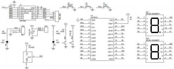Pour fabriquer un appareil électronique pour mesurer la température, vous devrez acheter une carte spéciale. Si vous voulez que les lectures soient claires et visibles de loin, il est préférable d'utiliser des indicateurs LED grands et lumineux. La connexion et la connexion correctes des éléments externes à la carte sont illustrées dans la figure.