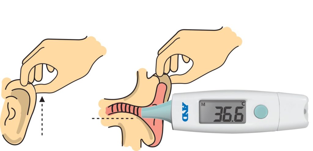 En se basant sur le fait que la mesure de la température corporelle d'un nouveau-né ne peut être effectuée que dans les parties accessibles du corps, il peut être conclu que les méthodes les plus acceptables pour cela utilisent l'infrarouge sans contact et certains types de thermomètres électroniques. Les thermomètres sans contact prennent des mesures en raison de l'élément sensible intégré qui répond au rayonnement infrarouge du corps. Pour connaître la température corporelle du bébé, il vous suffit d'apporter l'appareil sur sa tempe ou son front. Le plus souvent, ces appareils sont en outre équipés d'un capuchon amovible, que vous pouvez mesurer rapidement à travers l'oreille ou en touchant directement le front.