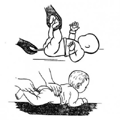 4. Avec une mesure indépendante, ils prennent la position du corps allongé sur le côté. Lors de la détermination de la température de l'enfant, il est couché à genoux sur le ventre. Le nouveau-né est allongé sur le dos, les jambes déjà pliées aux genoux.
