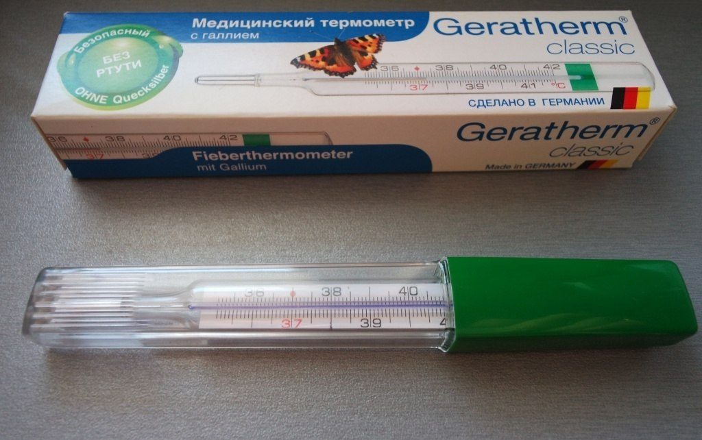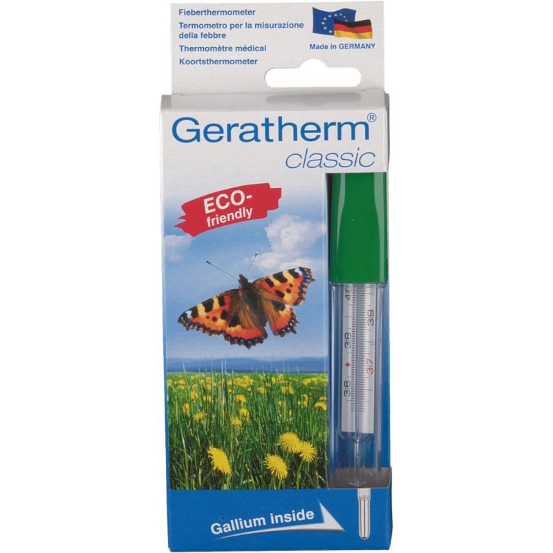- Geratherm Classic est un thermomètre sans mercure comparable aux caractéristiques d'un appareil conventionnel, avec une précision absolue des lectures et sans caractéristiques supplémentaires. L'inconvénient d'un tel appareil est sa fragilité, puisque son corps est en verre, ainsi que le «renversement» plus difficile des lectures.