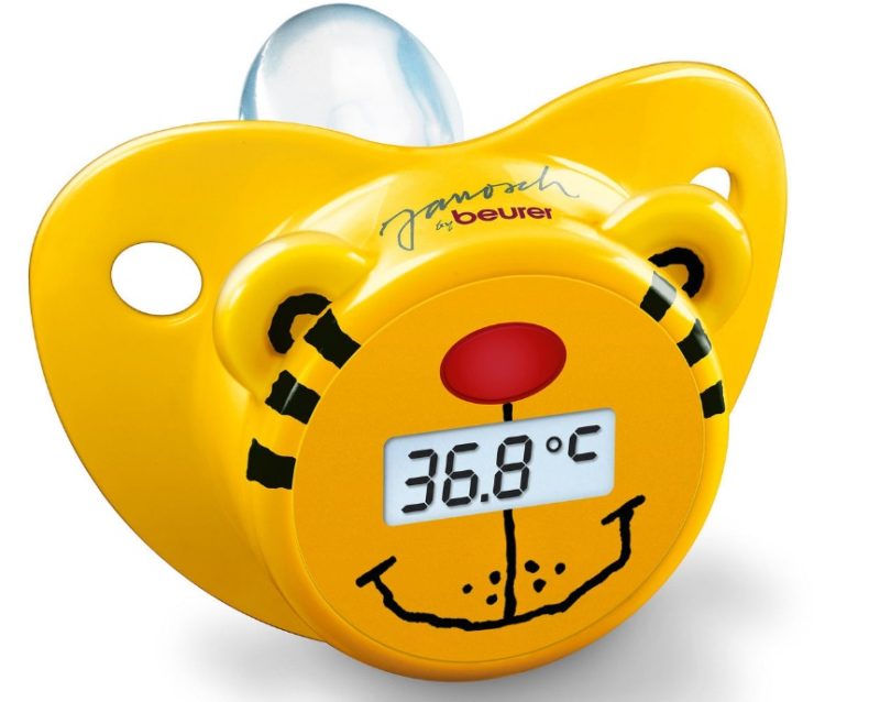Pour les enfants, les appareils électroniques sous forme de mamelons sont plus pratiques à utiliser, à l'aide desquels la température est mesurée par la bouche. Dans le même temps, n'oubliez pas qu'il est impossible de faire bouillir un tel mamelon, et pour maintenir sa pureté, il est nécessaire d'utiliser des moyens spéciaux.