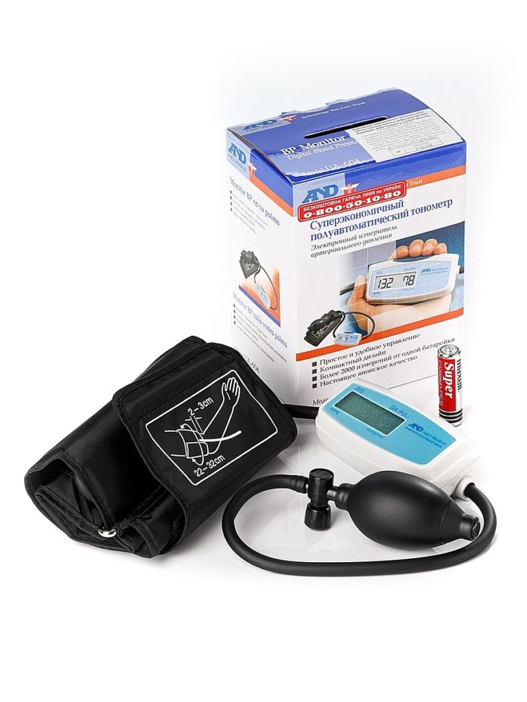 - Machine. Ce modèle a deux variétés - avec des montures sur l'épaule et sur le poignet. Il suffit de mettre le brassard et d'appuyer sur le bouton du moniteur. L'air est fourni au brassard par une pompe à piles. La mémoire de l'appareil reste l'indicateur de la mesure précédente. C'est très pratique pour les personnes âgées, chez qui l'audition et la vision s'affaiblissent. L'appareil a une haute précision des lectures.
