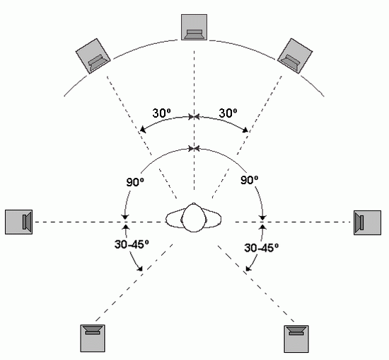 Ένα ιδανικό φόντο ήχου δημιουργείται όταν τα ηχεία βρίσκονται σε γωνία 45 μοιρών σε σχέση με το κοινό. Η διαμόρφωση της θέσης των ηχείων ενδέχεται να αλλάξει μετά το τέλος της εγκατάστασης.