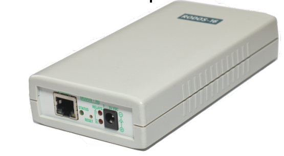 Le RODOS-16 est connecté via un câble à paire torsadée standard au port LAN d'un concentrateur ou d'un routeur. Le câble est connecté via la norme RJ-45.