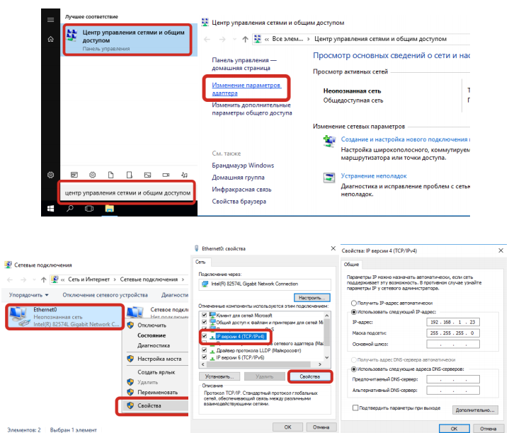 L'appareil se connecte presque automatiquement si le réseau dispose d'un ensemble de paramètres standard. équipement réseau fonctionnant sur votre réseau local. Une fois tous les câbles connectés, vous devez utiliser le Centre Réseau et partage, accessible via le menu Démarrer. Dans ce document, vous devez accéder aux «Modifier les paramètres de l'adaptateur», dans lesquels vous devez trouver «Connexion au réseau local». Dans les propriétés de TCP / IPv4, vous devez saisir votre UP. Tout. Nous redémarrons l'ordinateur et profitons du thermostat. Il existe plusieurs façons de le gérer.