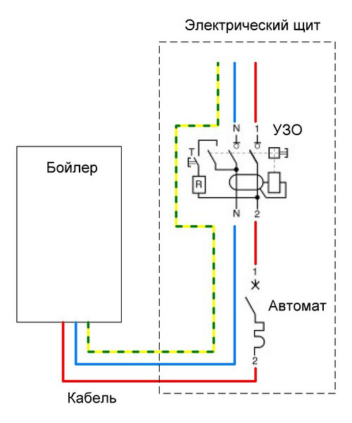 Schéma de connexion d'un chauffe-eau à un circuit électrique